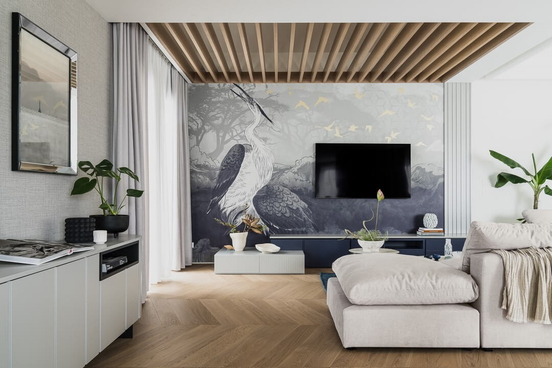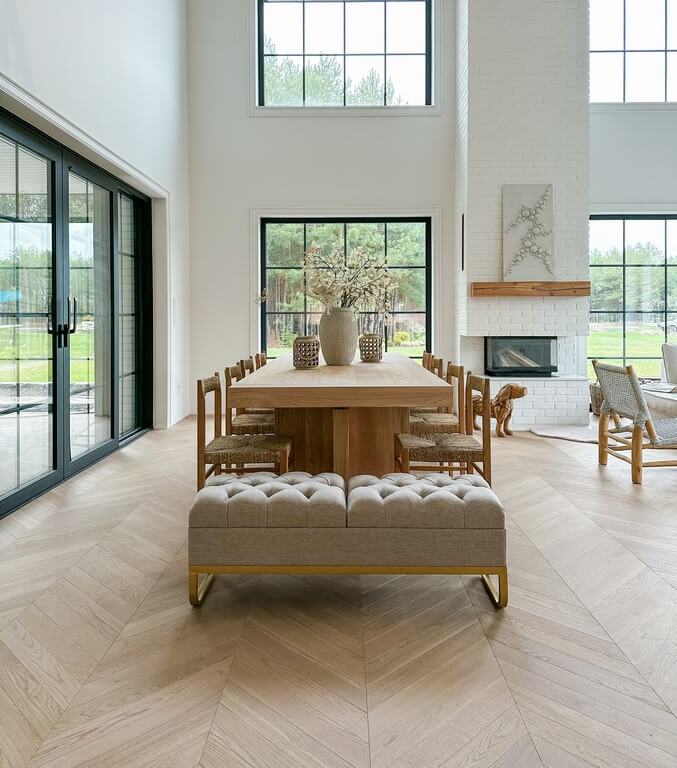 Die sorgfältig geschliffene Oberfläche fühlt sich angenehm weich unter den Füßen an und spiegelt die Harmonie der Natur wider. So entsteht eine ruhige und nachhaltige Grundlage für Ihr Zuhause.