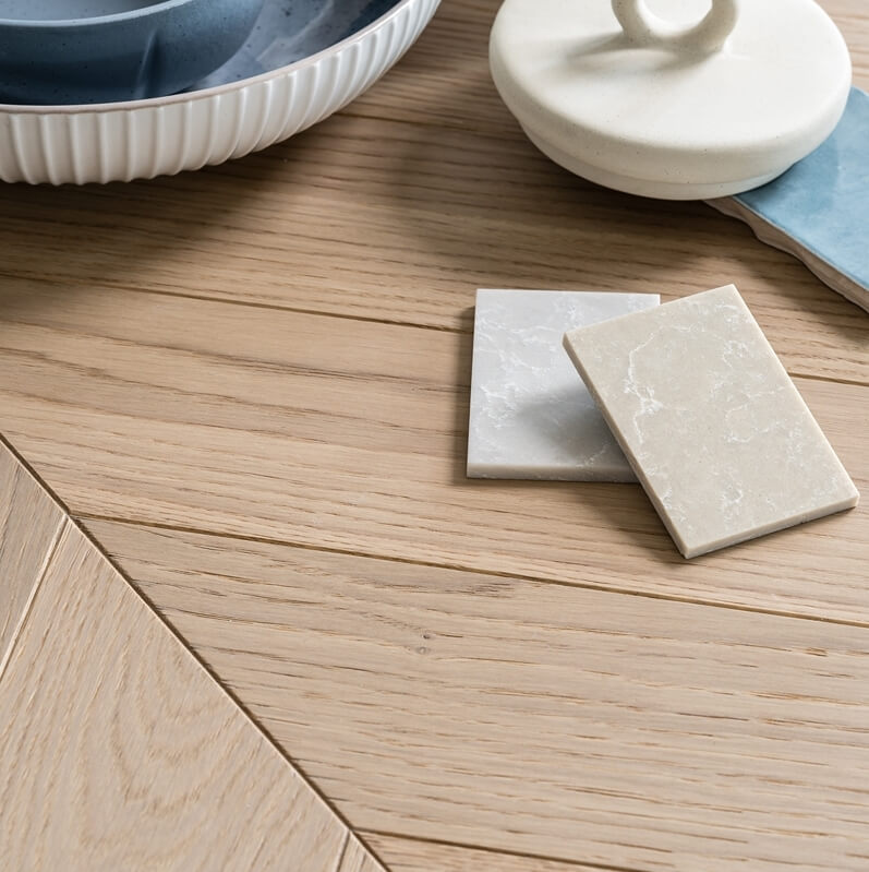 Helles Eichenholz ist ein zeitloser Klassiker, der in skandinavischen Häusern nie aus der Mode kommt. Der Farbton „Korpi“ ist die perfekte Wahl für Sie, wenn Sie eine helle und offene Atmosphäre sowie skandinavische Ästhetik und Langlebigkeit schätzen. Die UV-Mattlackierung verleiht dem Eichenholz das Aussehen von geöltem Holz, kombiniert mit der Strapazierfähigkeit einer lackierten Oberfläche. Erhältlich als Dielen-, Fischgräten- und Chevron-Parkett.